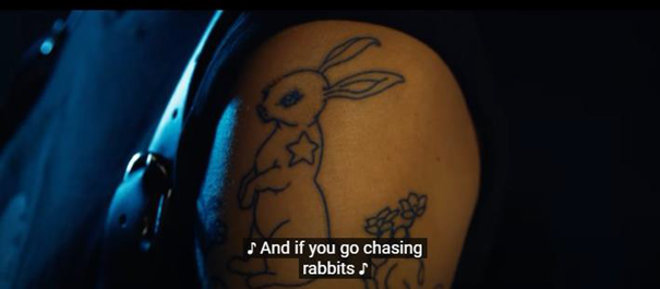 Filmin devamında Neo’nun bir kişilik karmaşasında, bir arayışta olduğunu rahatlıkla anlayabiliyoruz. Daha önceden de bahsettiğimiz gibi, Lana Wachowski’nin trans bir kadın olması ve böylelikle kişilik arayışını sonlandırması ile filmin devamında Neo’nun da kendi karakterini bulması ve buna göre hareket etmesi arasında bir paralellik kurabiliriz. Yine bu bağlamda, Neo’yu Matrix’ten çıkarmak için gelen, yani Alice’in tavşan deliği yolcuğunda yanında olan “Beyaz Tavşan” figürü, ilk filmde bir kadın karakter üzerinde iken son filmde bir erkek karakterin kaslı kolunda karşımıza çıkıyor. Bu noktada ise fikrimce, Lana eskiye göre hikayenin ve kendisinin birtakım revizelere, değişikliklere uğradığını anlatmak istemiş olabilir.